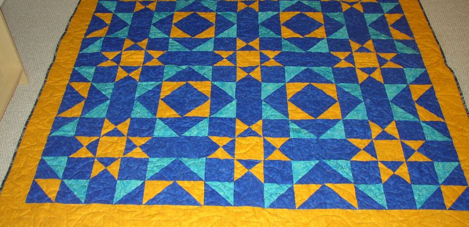 In late 2009/early 2010, I sewed my first Quilt of Valor (QOV). QOV is an organization that matches volunteers like myself who sew quilt tops with volunteer longarm quilters who do the quilting; the completed quilts are gifted to wounded service members. My impetus for making my first quilt of valor was the shooting at Fort Hood. Remember that? A U.S. Army major and psychiatrist killed 13 people and injured more than 30 others. I was shocked and saddened and remembered the old adage of ‘if you’re not feeling well, do something that helps someone else’. So I picked a pattern, ordered blue and yellow fabric, and started sewing.