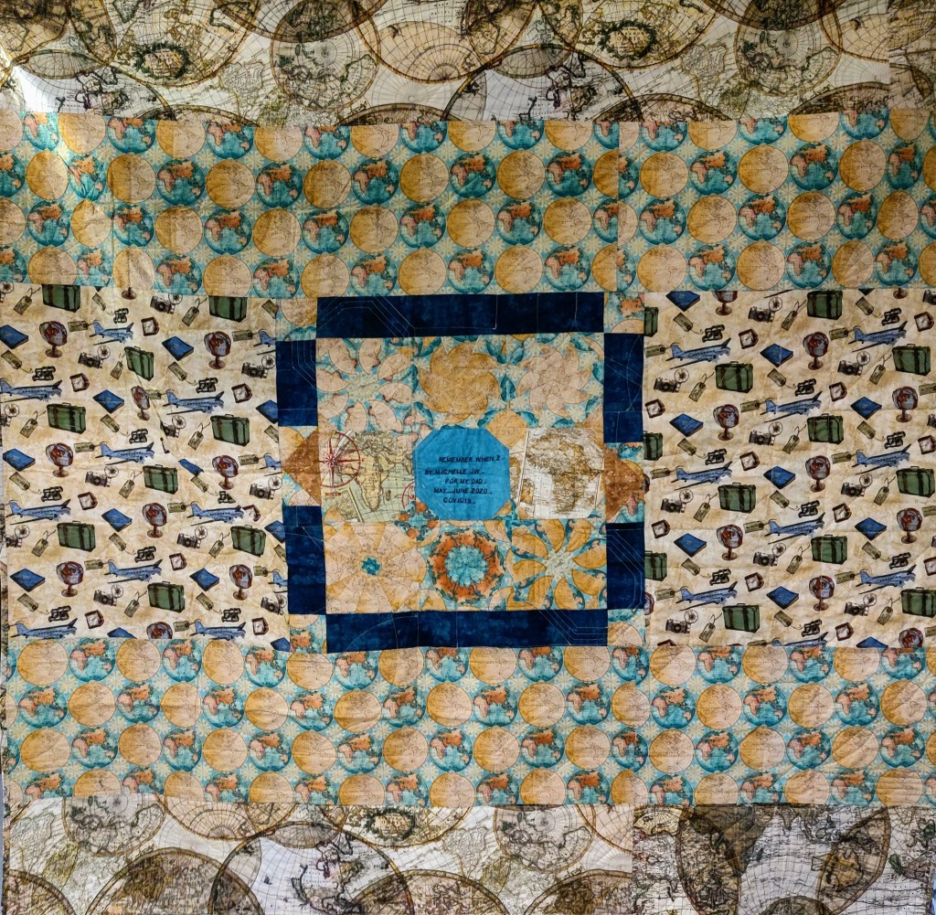 For Father’s Day 2020, I made a travel-themed lap quilt for my dad called “Remember When?” in recognition of the pandemic’s effects on my parents’ traveling. They are life-long world travelers and my dad is always planning their next trip. COVID-19 of course brought all plans to an unexpected screeching halt and sent them scrambling to return home from Brazil just in the nick of time.